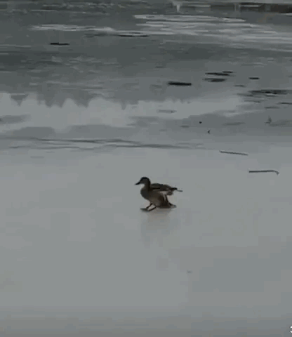 Mallards practicing for the Winter Olympics mixed doubles curling tournament.