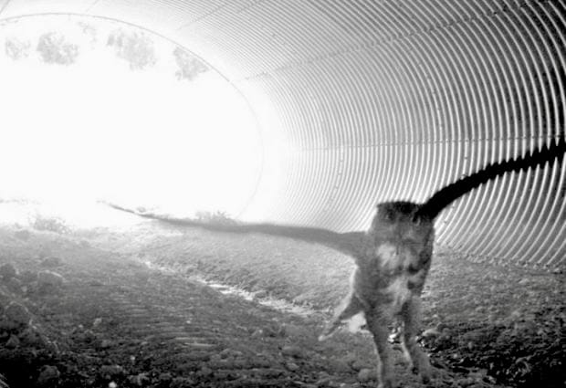 This photo comes from the “Missoulian“ newspaper of Missoula, Montana. It ran with a story about a new wildlife underpass built under US Hwy 93. Taken with a wildlife cam, the photos showed all sorts of critters taking advantage of the safe path from one side of the road to another. There were deer, raccoons, coyotes, and one Great Horned Owl.